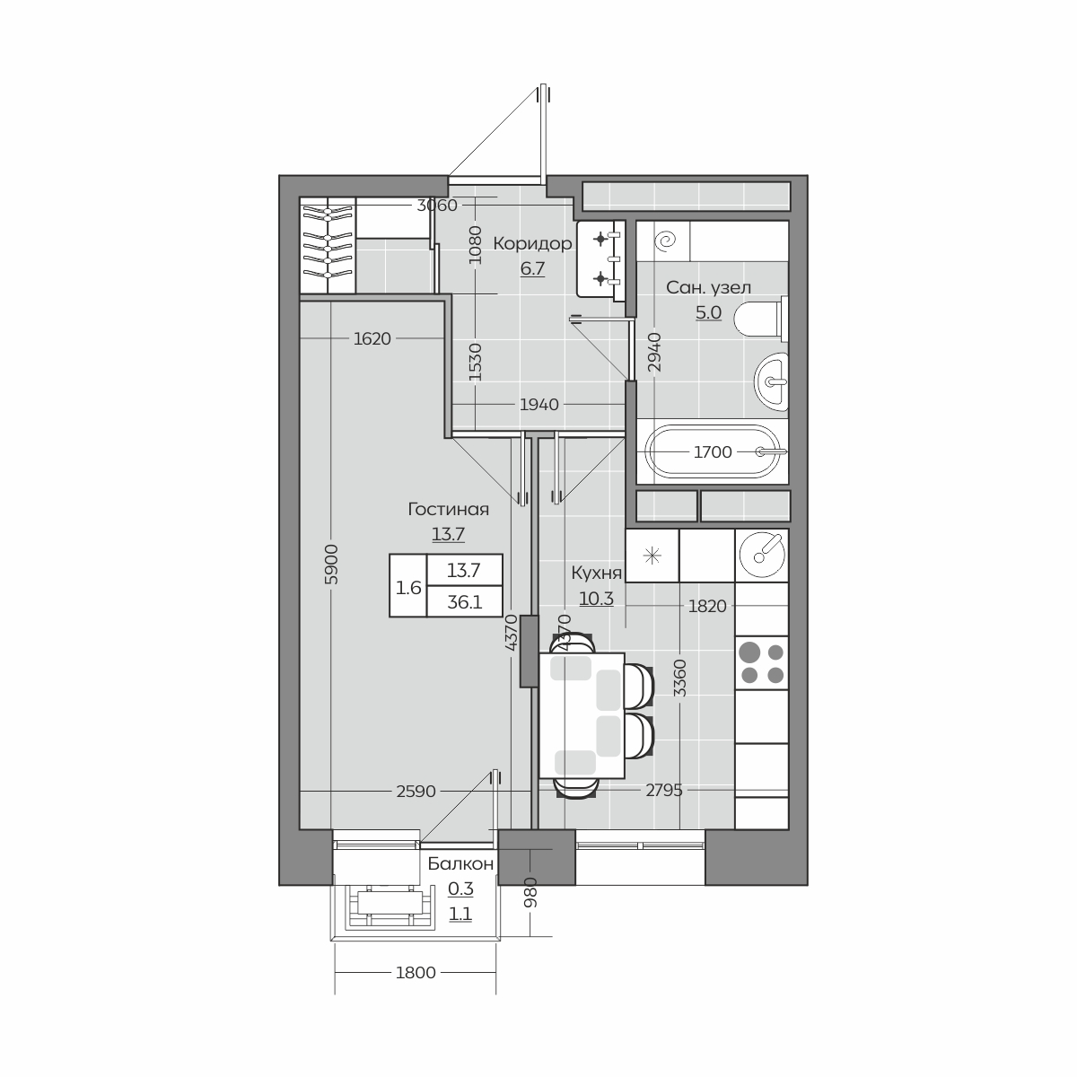 10.36 м²
