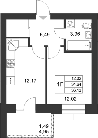 3-комн. евро квартира, 34.64 м², 3/7 этаж