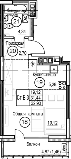1-комн. квартира, 31.44 м², 15/20 этаж