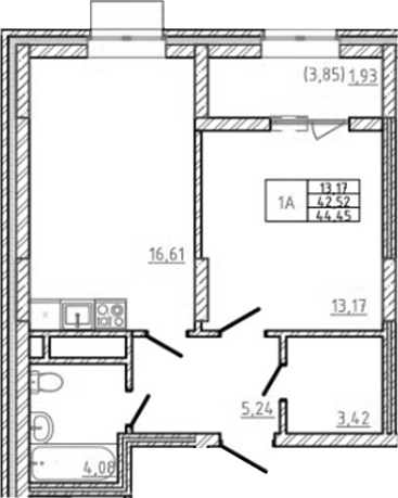 3-комн. евро квартира, 42.52 м², 9/9 этаж