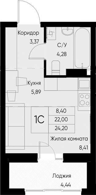 1-комн. квартира, 21.98 м², 6/7 этаж