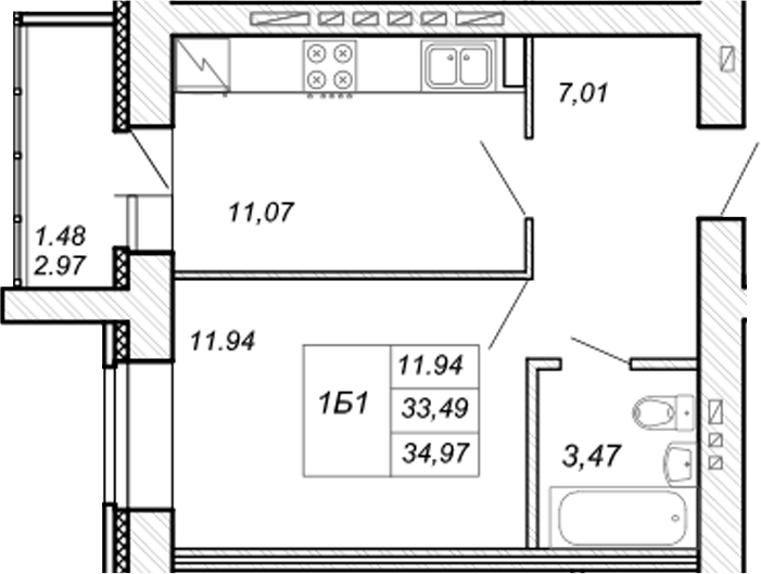 3-комн. евро квартира, 33.49 м², 5/10 этаж