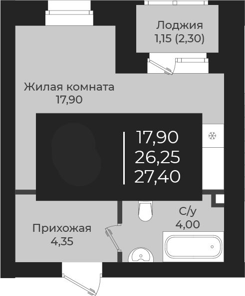 1-комн. квартира, 26.25 м², 2/4 этаж