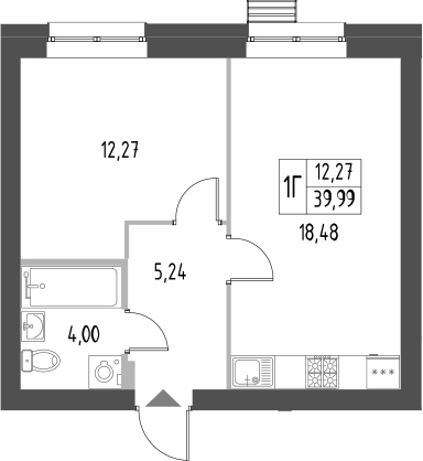 3-комн. евро квартира, 39.99 м², 5/8 этаж