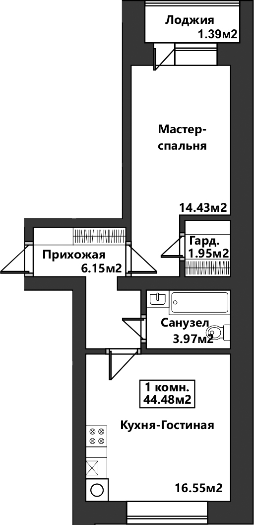 16.55 м²