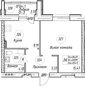 33.08 м²