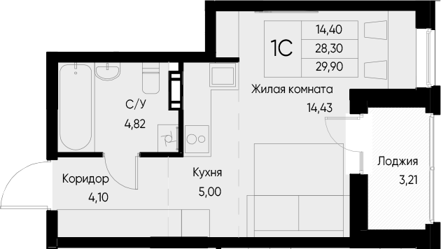 1-комн. квартира, 28.29 м², 3/8 этаж