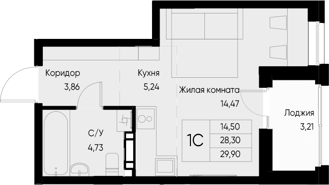 1-комн. квартира, 28.29 м², 5/8 этаж